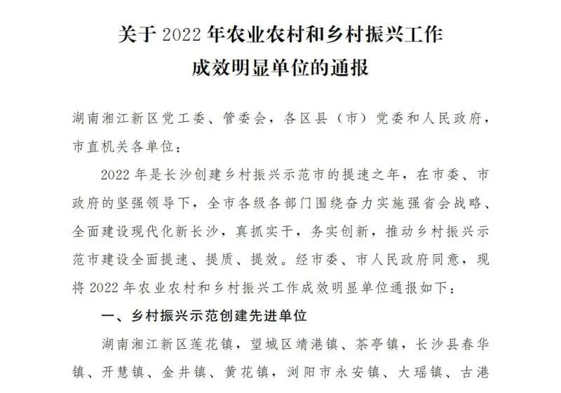 ? ? ? ? 2月20日下午,市委農(nóng)村工作會議召開。會議通報了2022年農(nóng)業(yè)農(nóng)村和鄉(xiāng)村振興工作成效明顯單位,長沙城發(fā)集團榮獲服務(wù)鄉(xiāng)村振興工作優(yōu)秀單位稱號。? ? ? ? 2022年是長沙創(chuàng)建鄉(xiāng)村振興示范市的提速之年,在市委、市政府的堅強領(lǐng)導(dǎo)下,全市各級各部門圍繞奮力實施“強省會”戰(zhàn)略、全面建設(shè)現(xiàn)代化新長沙,真抓實干,務(wù)實創(chuàng)新,推動鄉(xiāng)村振興示范市建設(shè)全面提速、提質(zhì)、提效。