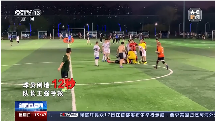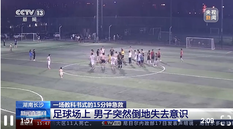 央視新聞:湖南長沙 一場教科書式的15分鐘急救 足球場上 男子突然倒地失去意識