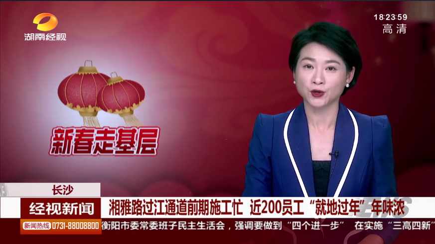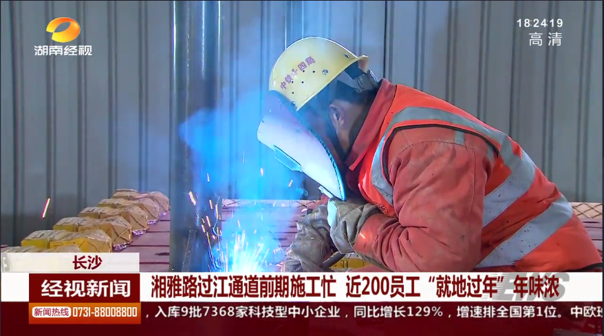 湖南經(jīng)視新聞:長沙:湘雅路過江通道前期施工忙 近200員工“就地過年”年味濃