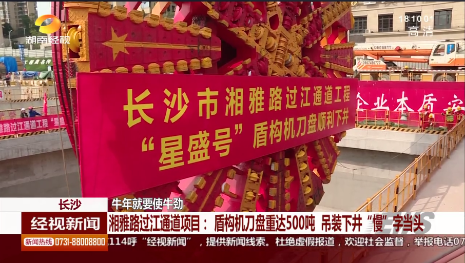 湖南經(jīng)市新聞:長沙 牛年就要使牛勁 湘雅路過江通道項目:盾構(gòu)機刀盤重達(dá)500噸 吊裝下井“慢”字當(dāng)頭