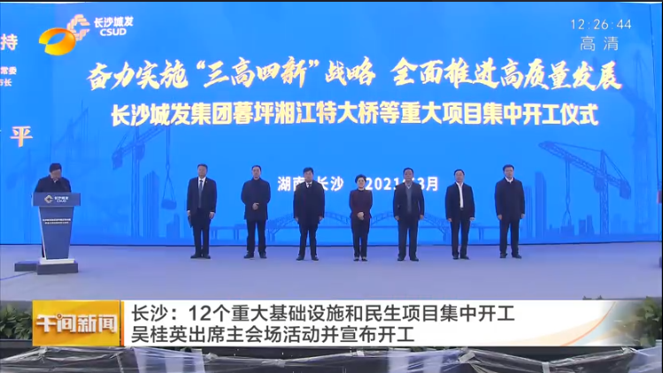 湖南衛(wèi)視·午間新聞:長(zhǎng)沙12個(gè)重大基礎(chǔ)設(shè)施和民生項(xiàng)目集中開(kāi)工 吳桂英出席主會(huì)場(chǎng)活動(dòng)并宣布開(kāi)工