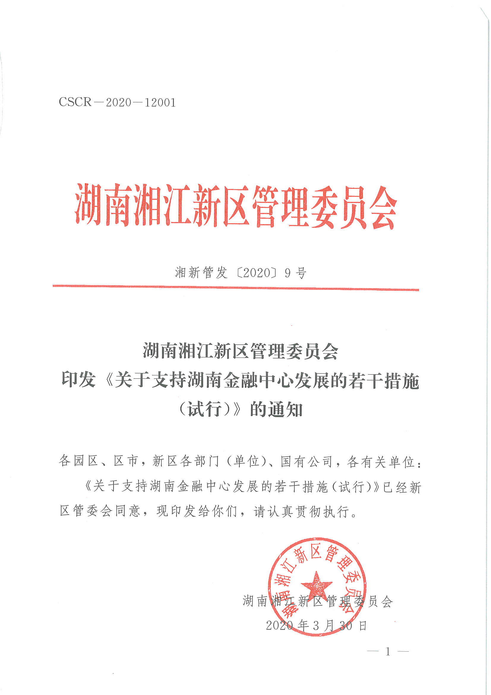 湘新管發(fā)〔2020〕9號?印發(fā)《關(guān)于支持湖南金融中心發(fā)展的若干措施(試行)》的通知?